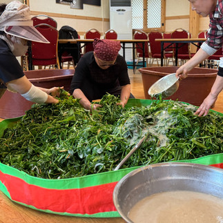 열무물김치를 받으신 어르신들은 "이 음식 먹으면 입맛이 살겠어요", "좋은 재료로 발효시켰다니 먹고 건강해지겠어요~", "너무 시원하고 꿀떡꿀떡 넘어가요" 라고 말씀하셨다.