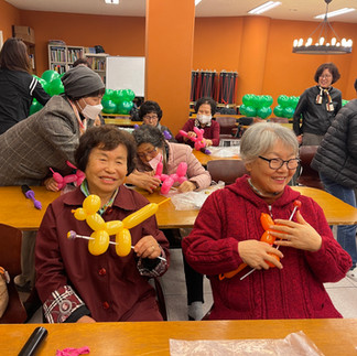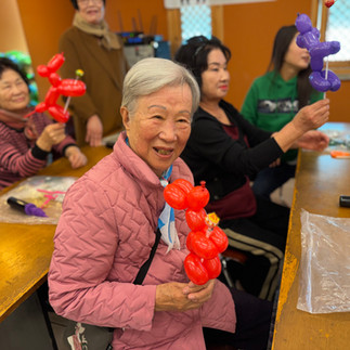 활동 전에는 몸풀기 겸 손자들에게도 자랑할 수 있는 풍선 강아지 만들기를 함께하며 웃음이 끊이지 않았다. 낯설지만 새로운 경험에 어르신들은 어린아이처럼 즐거워하시며 흥미롭게 참여하셨다.하시며 흥미진진하게 참여하셨다.