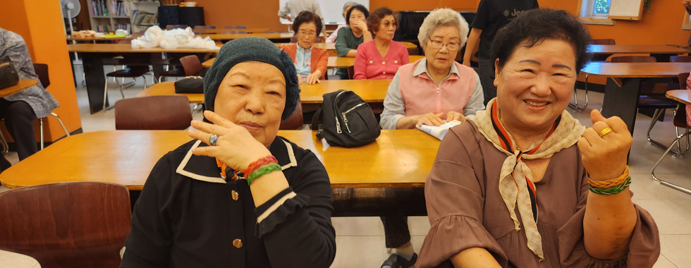 탄탄실버체조 시간에는 특별히 센터 정원학교 아이들과 함께 밴드를 이용한 체조를 하였는데 아이들을 보고 따라 해서 그런지 더 유쾌하게 참여하셨고 "몸에 근력이 생기는 것 같아. 아주 좋아!" 하시며 환한 미소를 지으셨다.